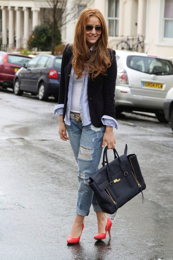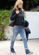 Before buying a regular pair of jeans, you need to think about what shoes you will combine them in order to choose the right length. For example, with sports shoes, the length of jeans should be a few centimeters above the sole. If you wear shoes on the platform or heels, then jeans should be like in the middle of the heel. The exception to the rules are skinny, because of the narrow cut, they always have ankle-length.