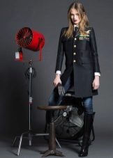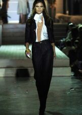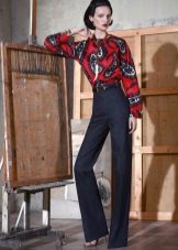 - Black denim jeans Due to the high waist and arrows on the legs, this model does not distort the proportions of the figure, but it is still recommended to wear it with high-heeled shoes.