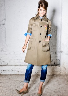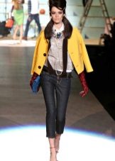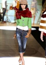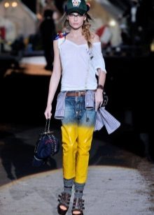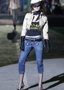 - Straight cropped jeans with low pockets. An interesting feature of this model is a combination of three types of denim of various shades.