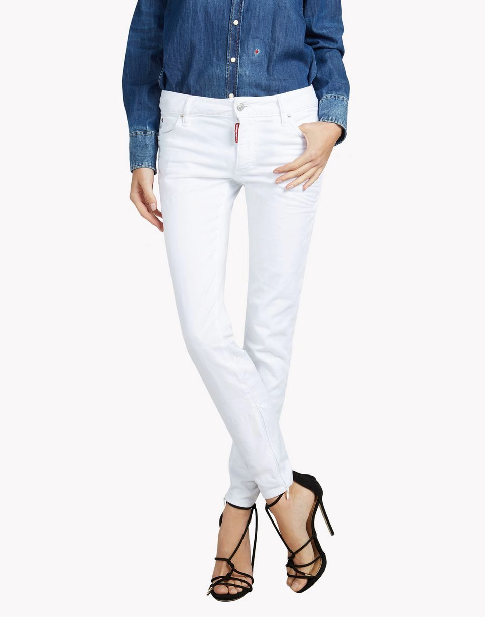 - White skinny jeans are a perfect option for the summer for slim girls. The model fits tight hips and legs, effectively emphasizing the figure.
