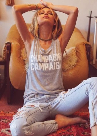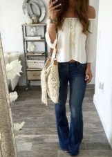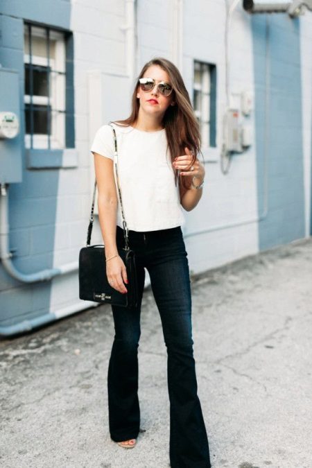 For summer, choose light blouses, cotton T-shirts or cropped tops. Dilute your bow with fashionable accessories in the form of bracelets, earrings and large rings.