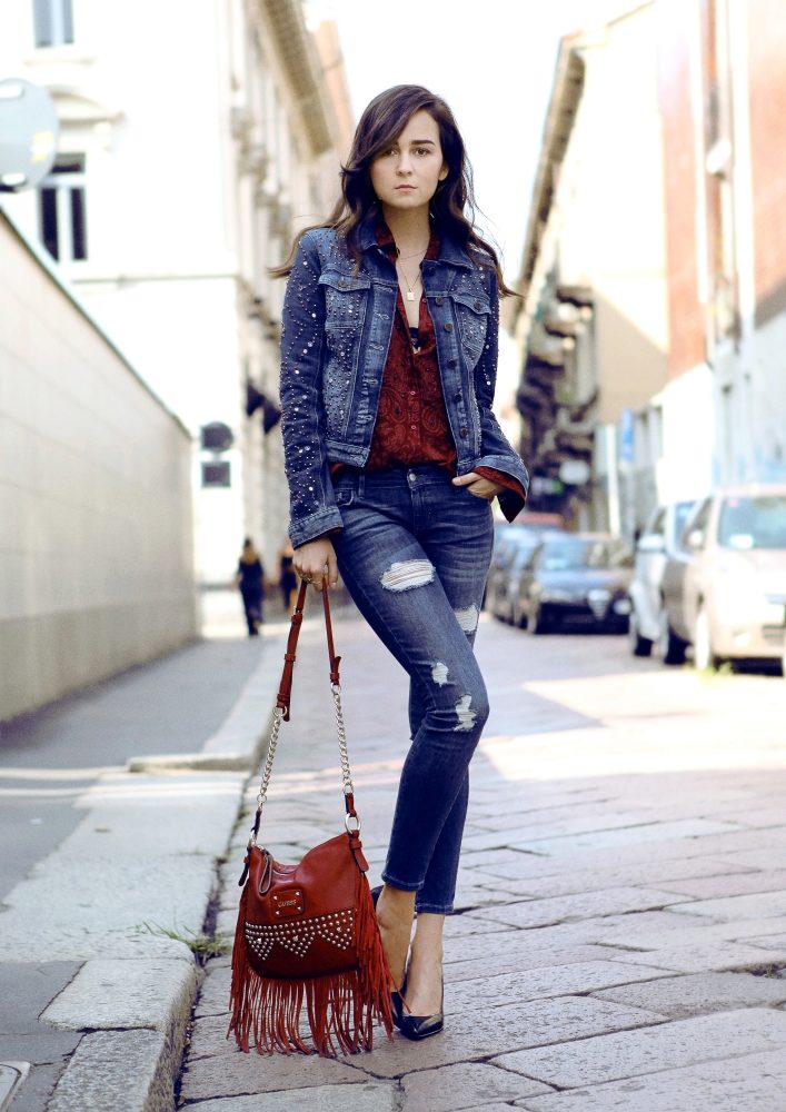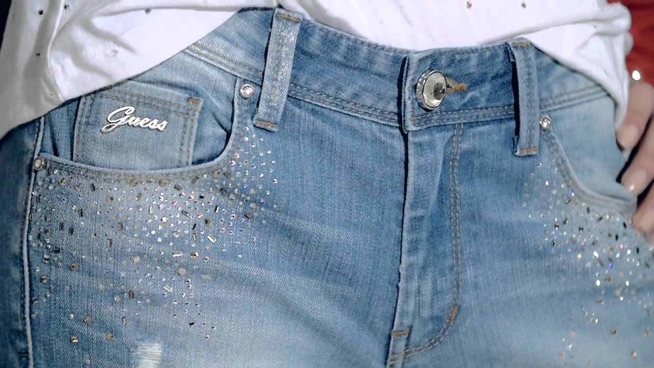 - bright decor in the form of rhinestones, rivets, etc., which undoubtedly makes GUESS jeans a recognizable brand among fashionistas;