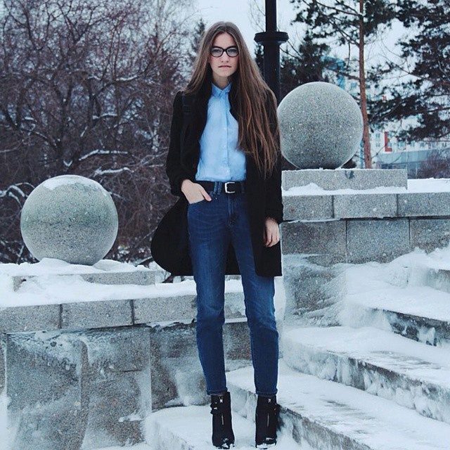 For the winter period wear insulated long sleeves, sweatshirts, oversized cardigans. Choose shoes in accordance with the weather, diluting your image with large bags.