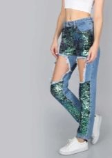 The most fashionable jeans are considered to have open knees, the material is torn at the hips.