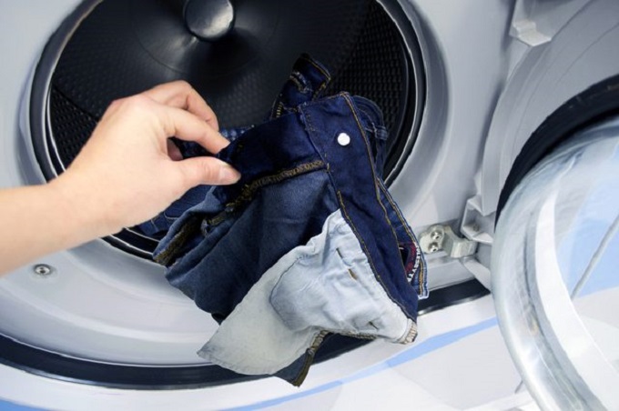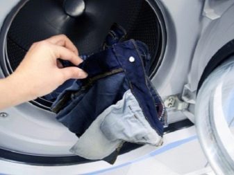 - First, zips, buttons and buttons are fastened on the pants. Then they are turned over, and then sent to the washing machine. Wash only jeans. Other things must be missing.