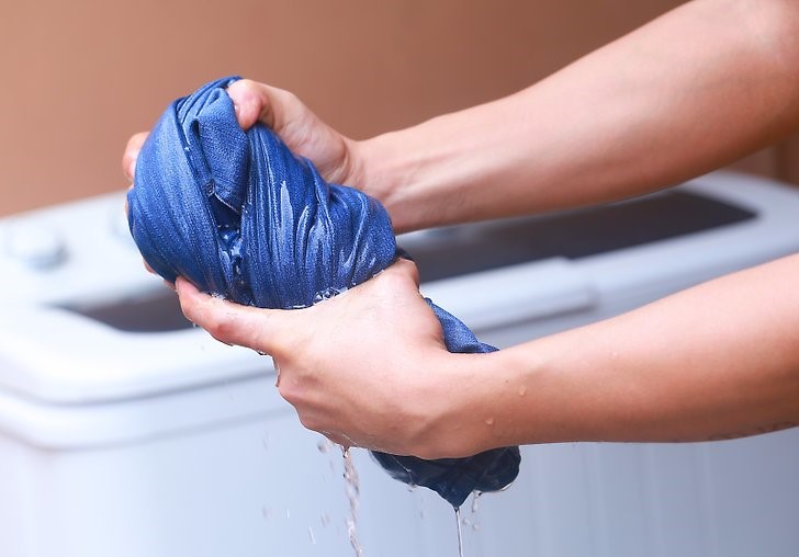 - Washed jeans must be carefully compressed. Twisting them like a regular doormat is strictly prohibited. It is enough to hang up your pants on a rope in the bathroom and the water will drain away. You just need to wait a bit.