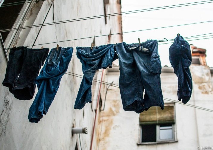- Drying should take place on the street or in a ventilated area. Moreover, jeans should be in a strictly horizontal position. To do this, pants gently laid out on any flat surface.
