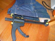 You can stretch the fabric mechanically. It will be most effective to do it right on yourself. Therefore, we stretch our jeans and start charging.