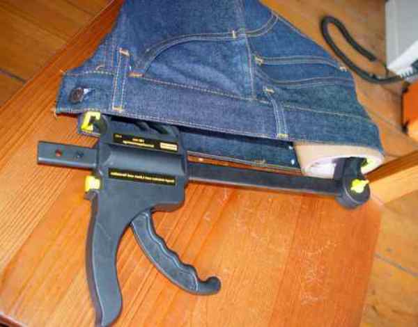 The settled section needs to be steamed for several minutes. Gradually, the fibers will begin to straighten, the former elasticity will return to them. While the pants are still saturated with warm steam, they need to be quickly put on - let them cool down already on you. Go around in jeans for an hour and a half so that the new uniform has time to lock in.