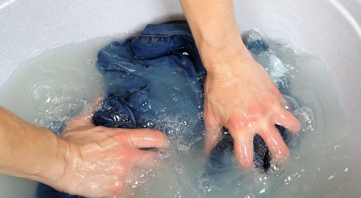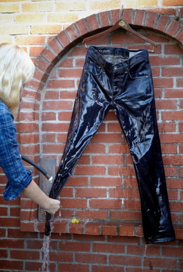 - Then we stretch our jeans and dip into the bath. You need to sit there for 10-15 minutes so that denim is well soaked.