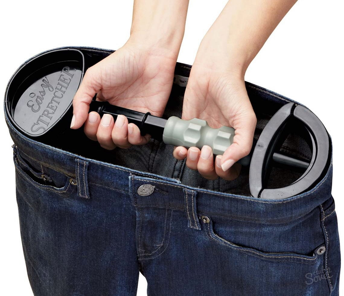 Stretch jeans can be different. For example, throw them through a horizontal bar, cling to them with your hands and hang as long as you can. Or stretch the pants on the floor, pin down their knees on the hips and with all the force to pull the pants up.