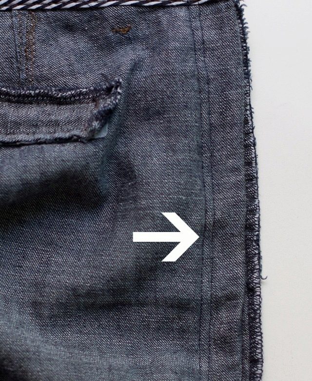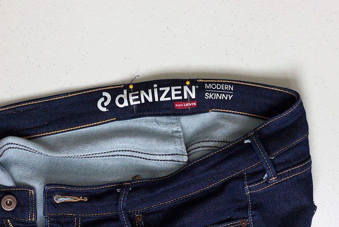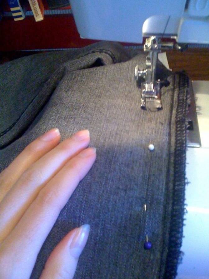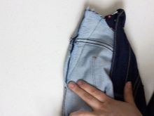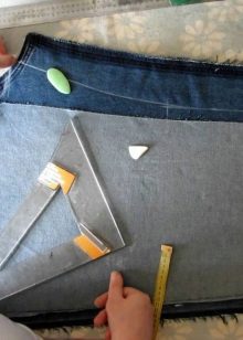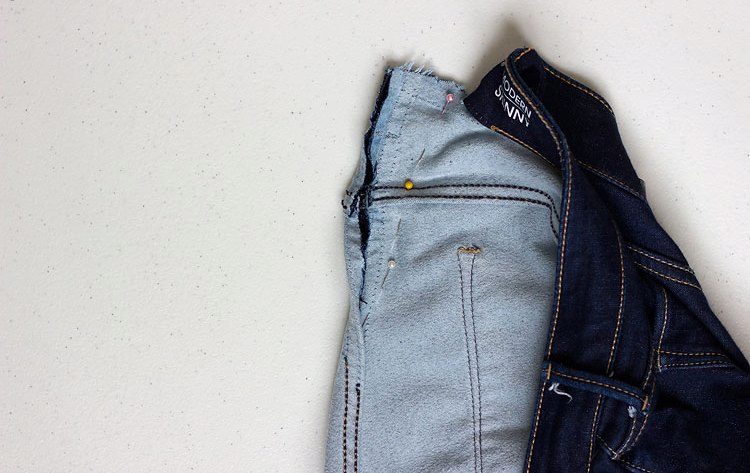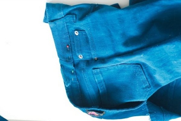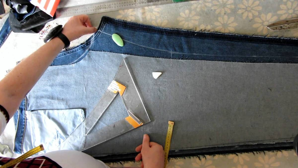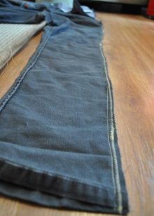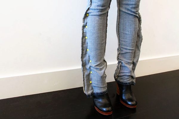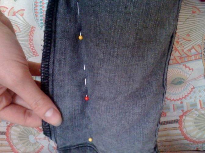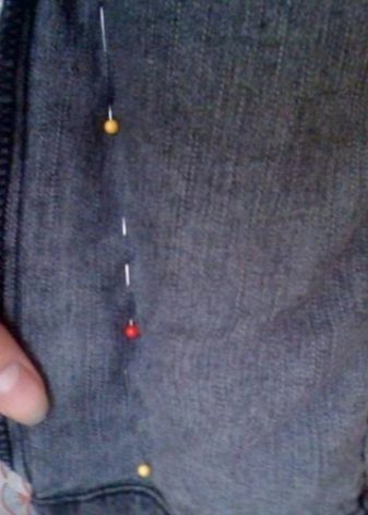 - Unscrew the jeans on the wrong side and wear. With the help of pins mark the new seam.