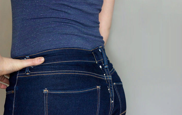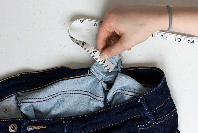 If jeans are spacious in the hips and waist, then the belt should not be steamed. Trousers must be completely unpicked and stitched to the new sizes.
