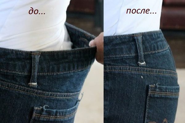 If the jeans look great on you, but a little big in the belt, then the situation can be corrected by taking them along the back seam line and along the waist.
