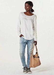 - Before you start choosing, decide on the style. Skinny jeans are a versatile model in which you can safely go to work and for a walk, provided that you have the perfect figure.