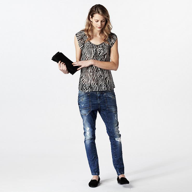 - Be sure to look at the material, dredge it. Then you will understand how the jeans will “behave” on you.
