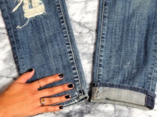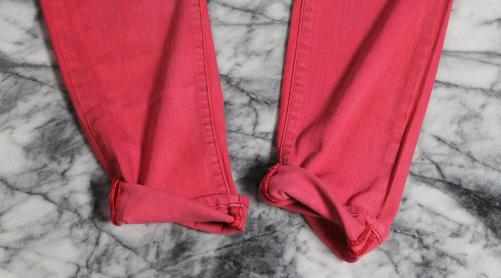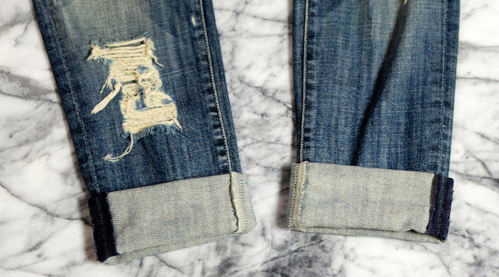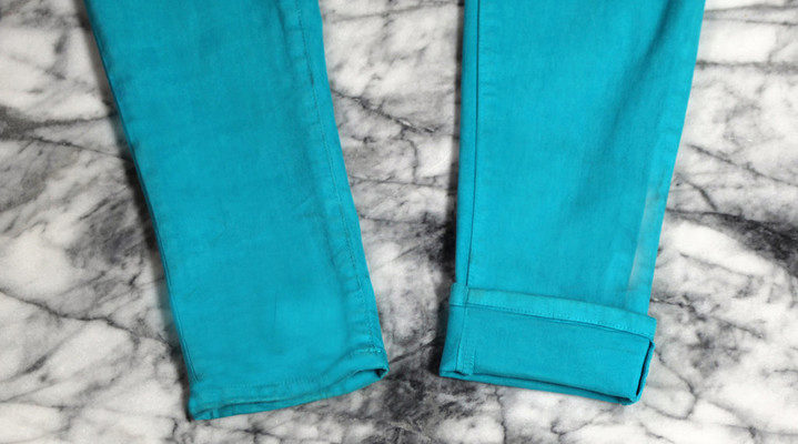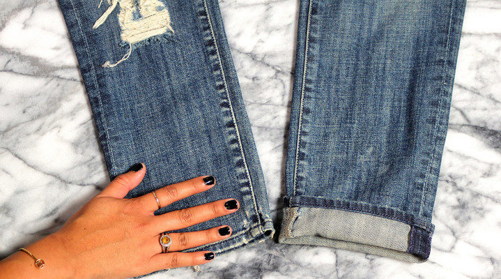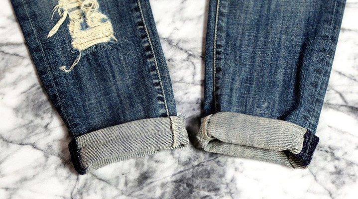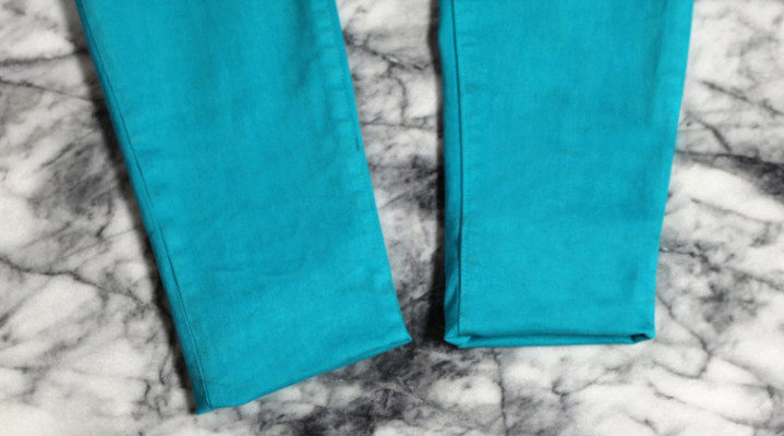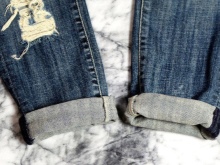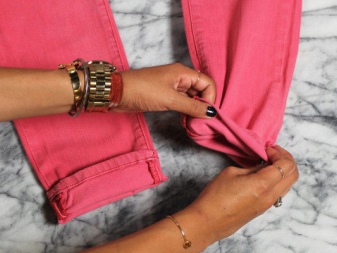 In most cases, the inner latch make for shortening jeans without scissors. It is best to make such turns on skinny jeans or other models of thin jeans. For example, stretch.