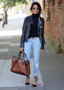 The best option for the underside is straight jeans. Tightening straight jeans, you create a contrast, showing the elegance of the female ankles against the background of a wide leg. In addition, you can easily knuckle your trouser legs down by choosing a wide gate or a bulk gate.