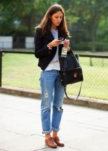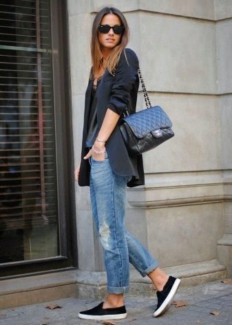Shoes "on the low run" - the best choice. Combine jeans with turnings and moccasins, slip-ons or loafers.