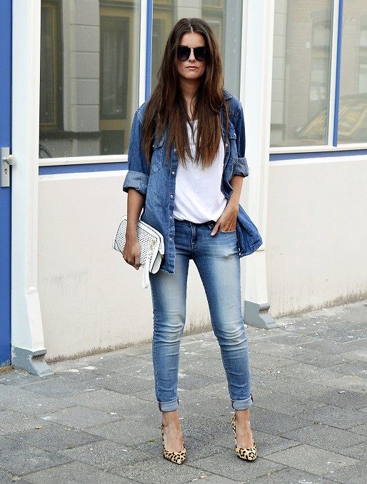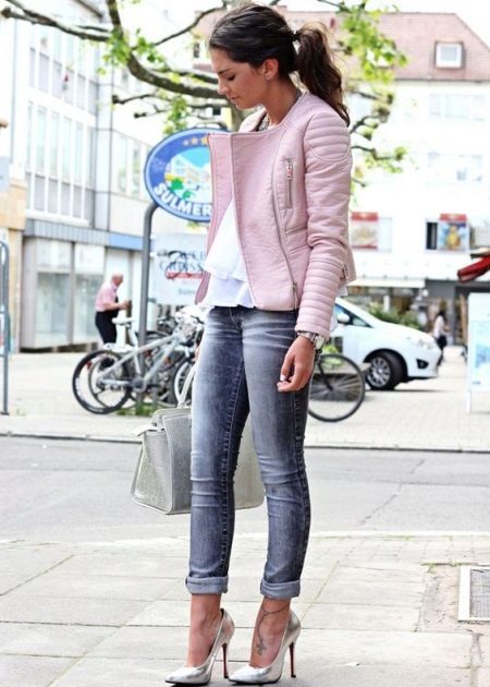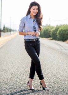 Turn-ups on skinny jeans are best for skinny girls. At the same time, choose shoes with heels for shoes.