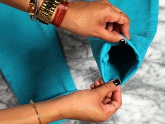 - Tuck the pant leg to this length. If the fabric is very dense, it is better to make a single wide turn.