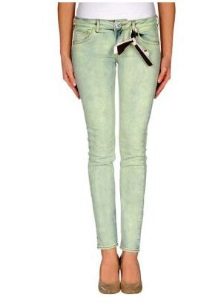 Some lots of jeans were decorated with canvas belts of different colors. This innovation really enjoyed the youth.