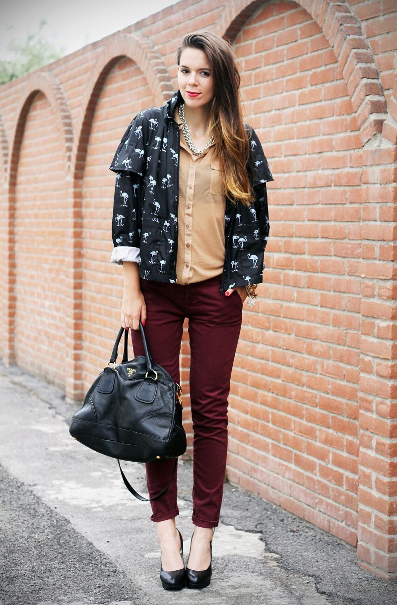- On one of the back pockets there must be a badge with the logo of the brand. Red-brown colors are also used here.
