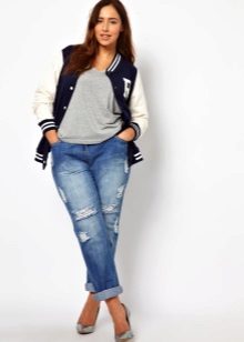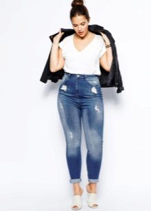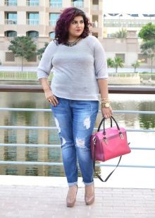 Jeans are a convenient, relevant and practical element of the wardrobe, which is suitable not only for slender girls, but also for owners of magnificent forms. If you choose the right style, competently combine jeans with other things, even full women will look brilliant in them. Today in a trend are torn models that can be worn by girls of any body type.