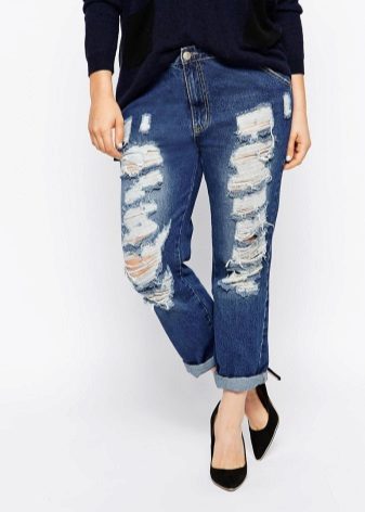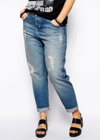 Today, the stores have a large selection of ripped jeans for plump women who are great for making an image in street or casual style. The complex of the figure is different, so each girl should find “her” model, as well as color and length.