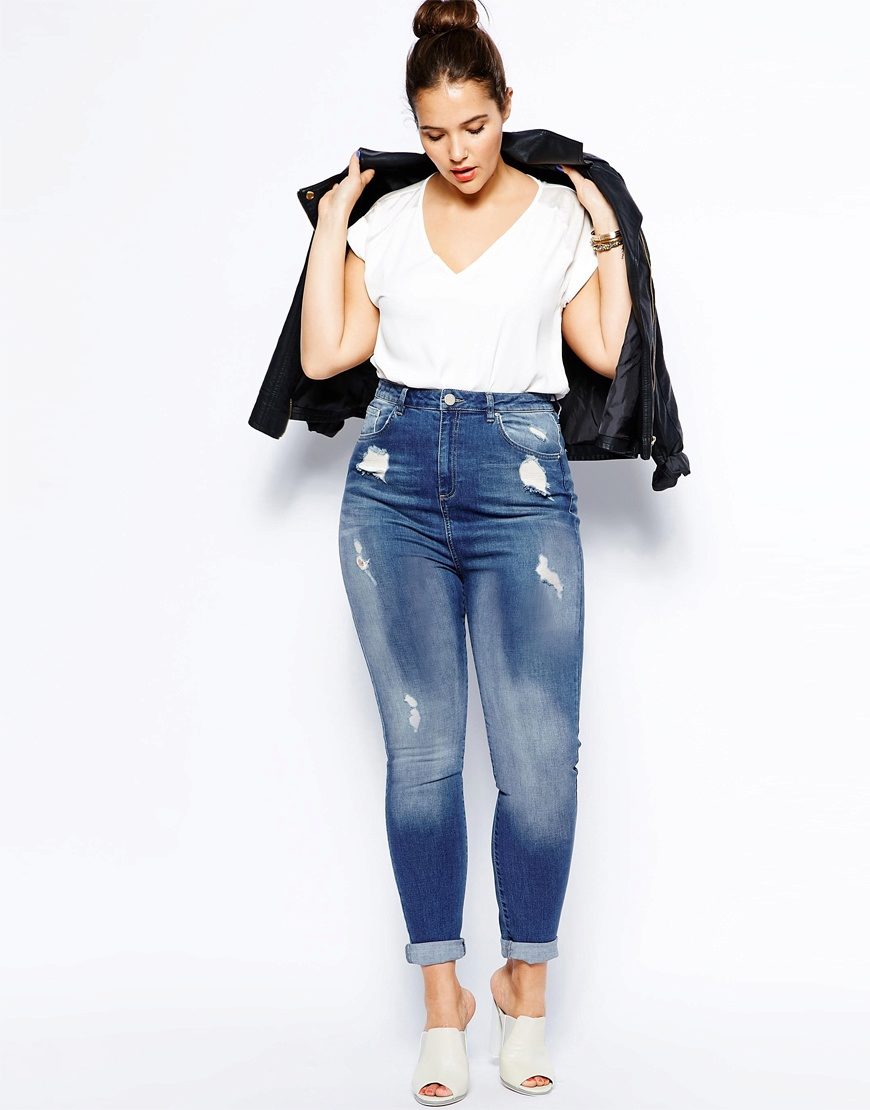 Ripped jeans for the full should fit perfectly on the waist and hips to hide those extra pounds and lengthen the silhouette. When choosing a jeans model it is worth starting from growth and build.