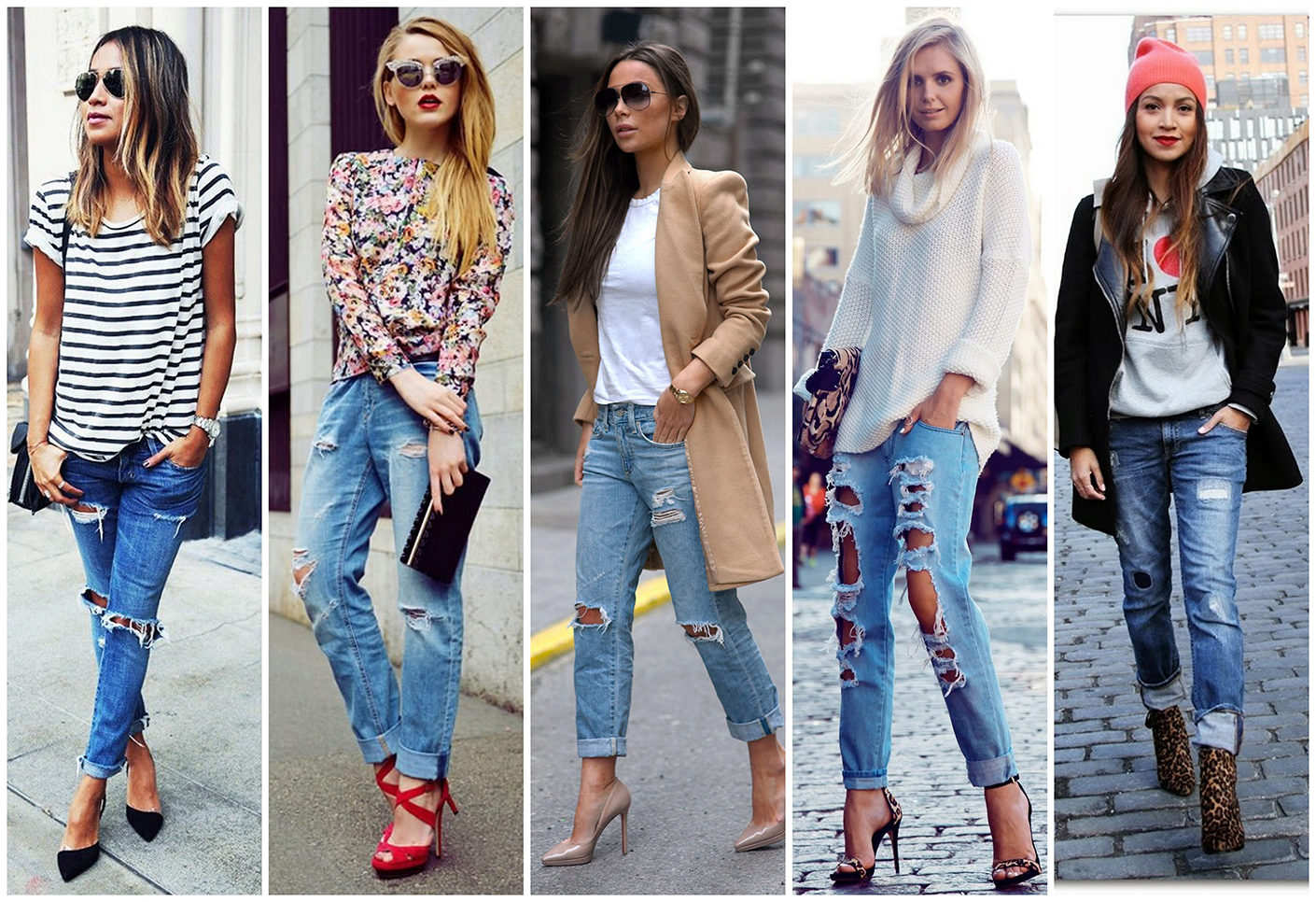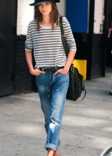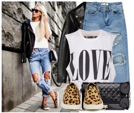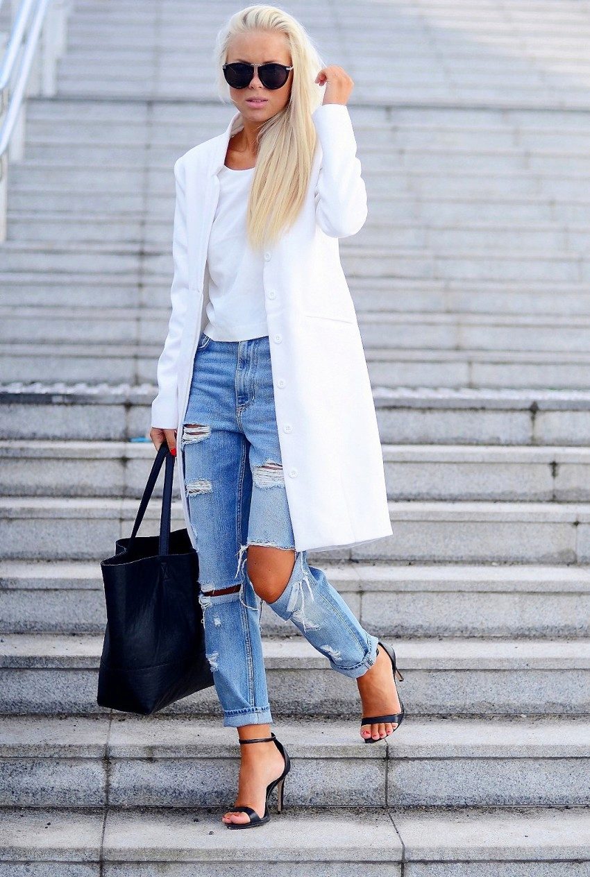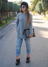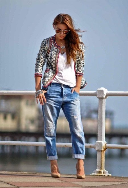 Initially, boyfriend jeans give the image of brutality and audacity.Properly selected items of clothing in tandem with ripped jeans will help emphasize or smooth out this feature.
