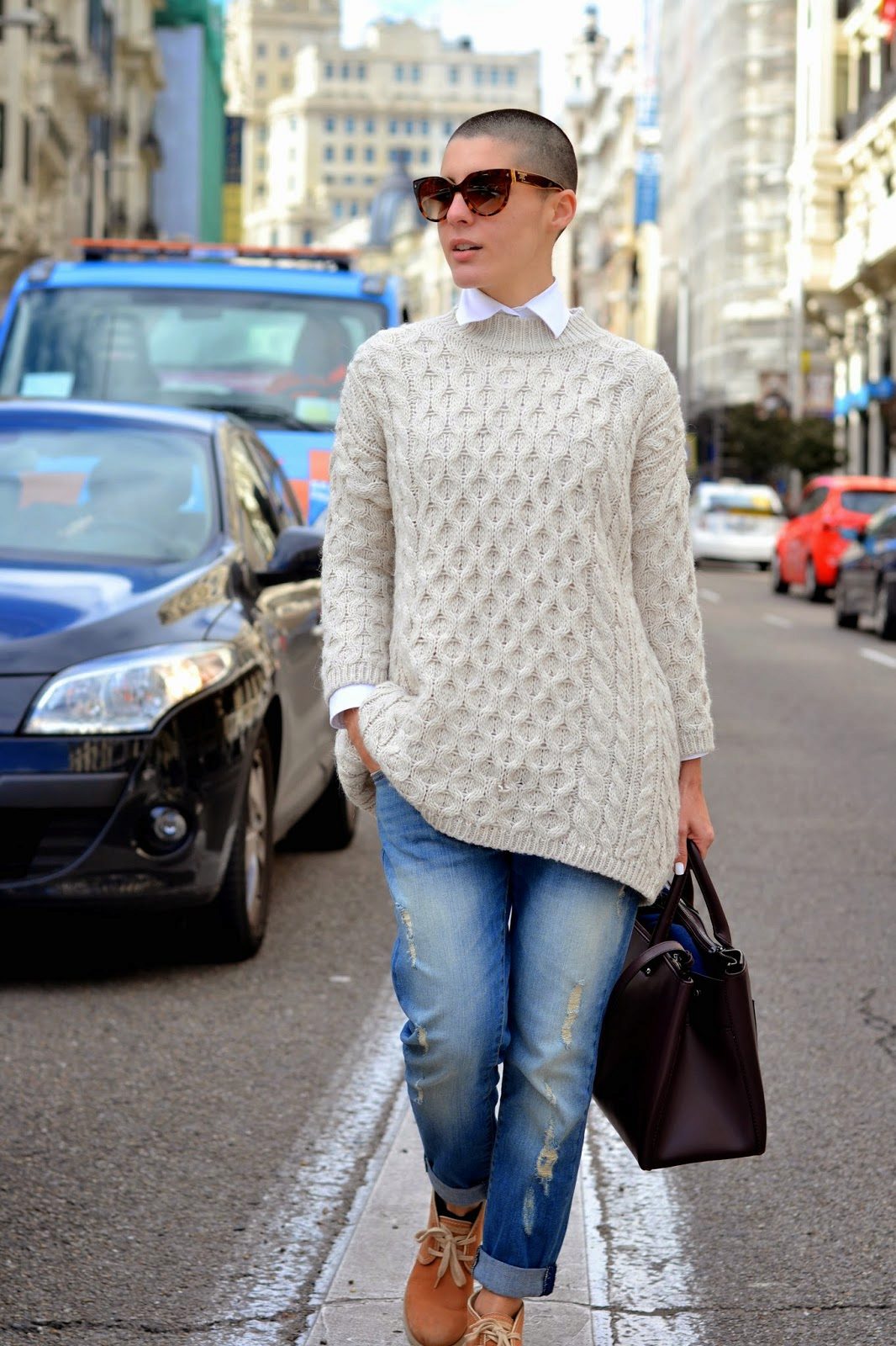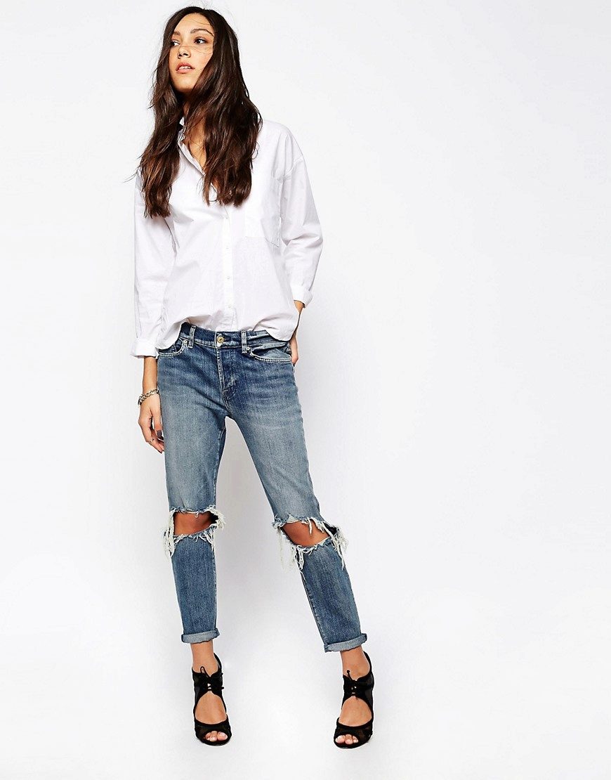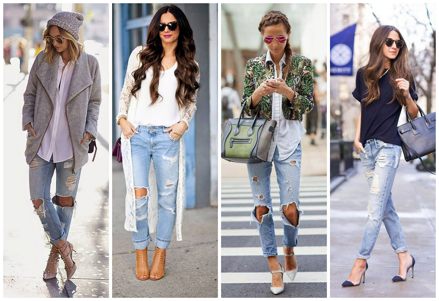 Initially, boyfriend jeans give the image of brutality and audacity.Properly selected items of clothing in tandem with ripped jeans will help emphasize or smooth out this feature.