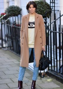 In the cool season, ripped jeans can be worn with knit sweaters, jackets, leather jackets, denim shirts. Shortened models or with a length slightly below the belt are popular. Usually in cold weather, a T-shirt tucks under jeans, so you should look for a bright belt. Warm clothes that are worn loose, emphasize the presence of a belt.