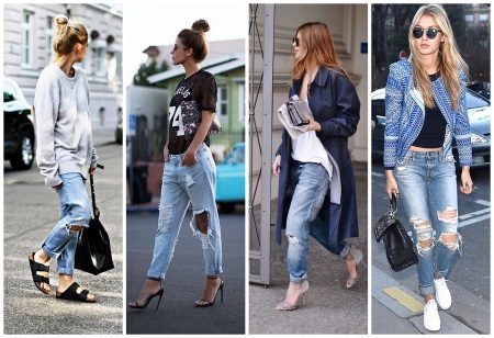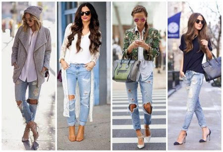 Jeans never go out of fashion. Of course, their style, color and decor are changing, but the demand for this item of clothing is always very high. In recent years, many fashionable women prefer jeans-boyfriend. Torn models are at the peak of popularity.