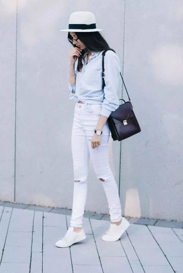 Despite the fact that ripped jeans are more of a youth style, they are loved by most fashionistas.
