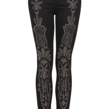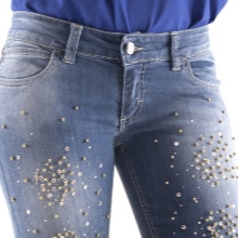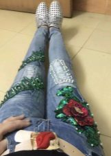 Very often there are jeans with a decoration in the form of an ornament of beads, located on the outer seam of the pants.