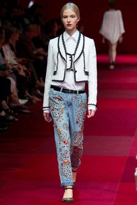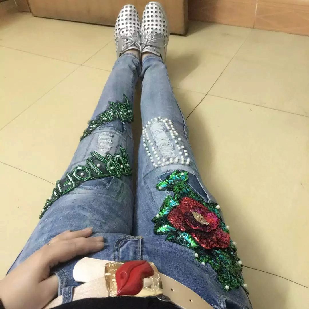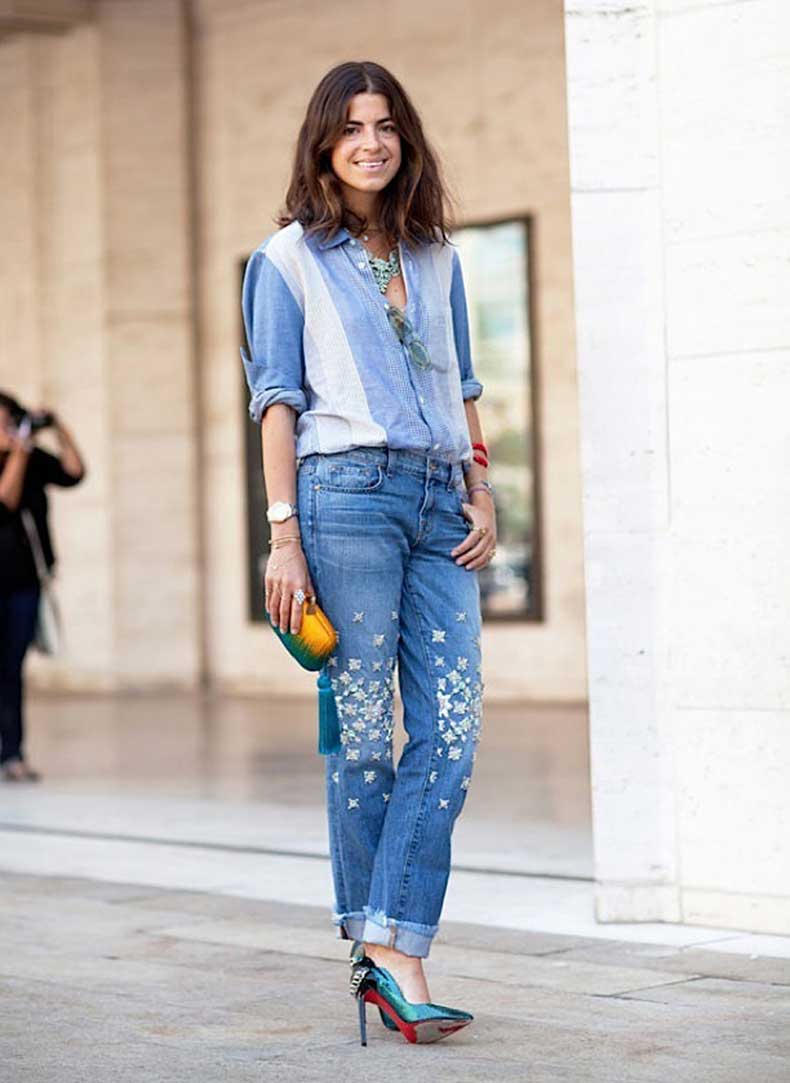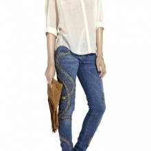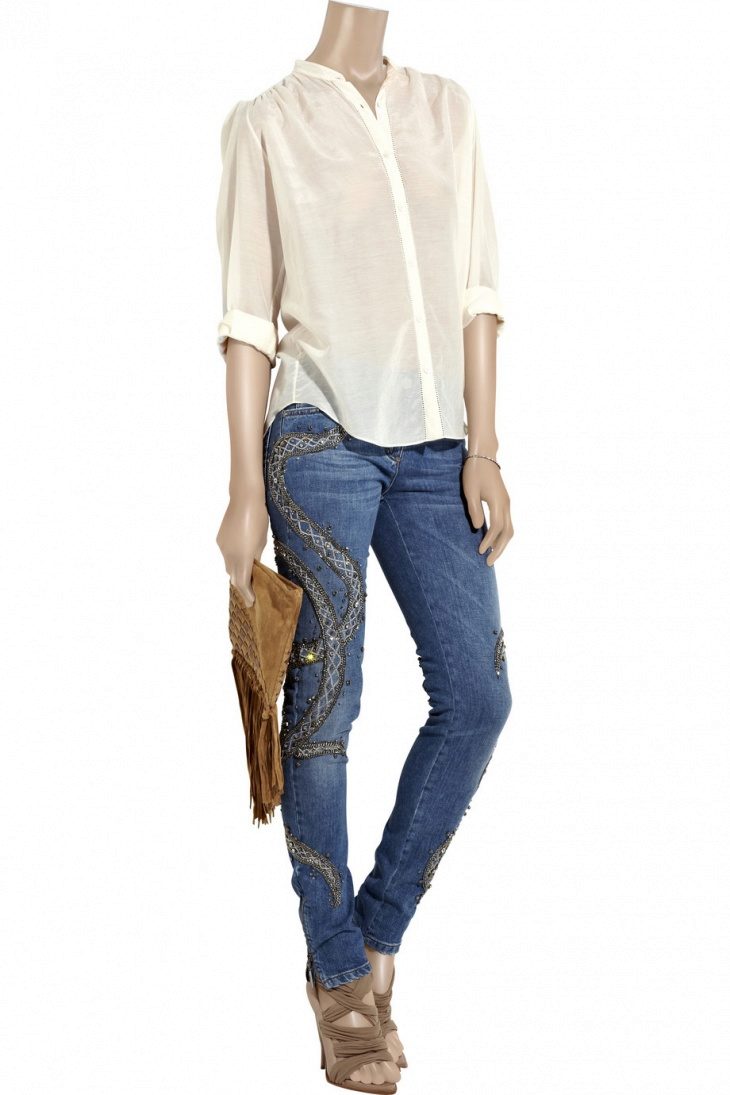 This decor helps to make the image more vivid, spectacular, memorable. You can buy ready-made embroidered jeans or decorate your favorite pair on your own, turning it into an exclusive item.