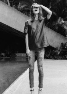 - Tapered models. One of the most feminine and beautiful options. Skinny jeans, beautifully fitting slim waist and long legs, already by themselves look very stylish. Additional decoration in the form of beads of one or several colors will certainly attract attention to such a combination.