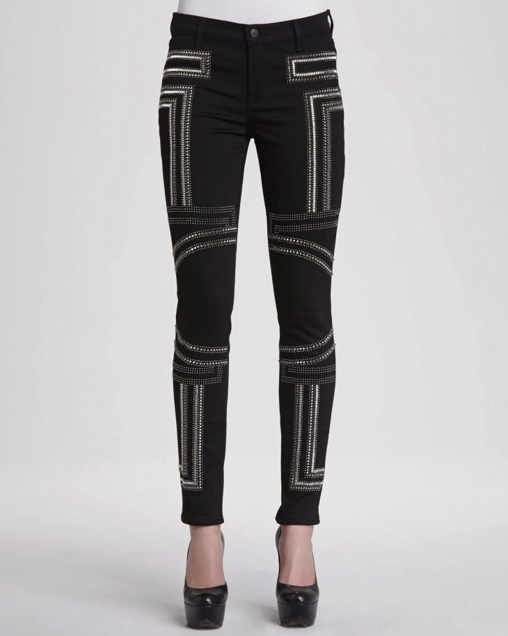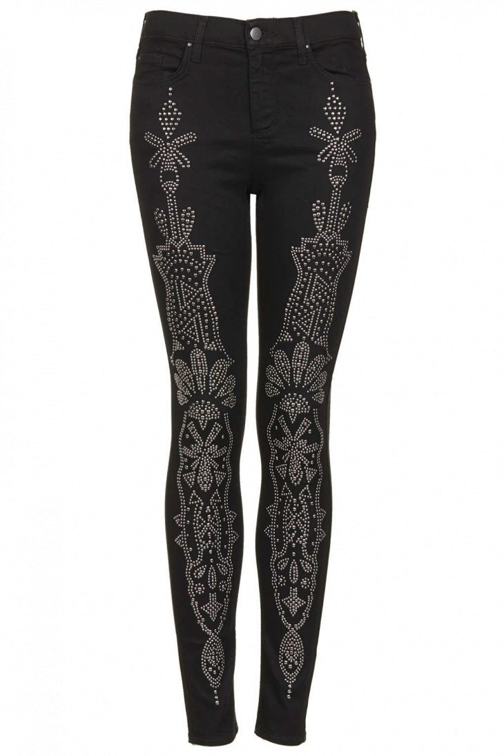 The decor can be located at the bottom of the jeans, on the cuffs. Neat appliqué on the pocket or laconic ornament on the belt will emphasize the bright personality of the owner of such jeans.A long, ornate pattern along the entire length of the leg looks very impressive on tight jeans.