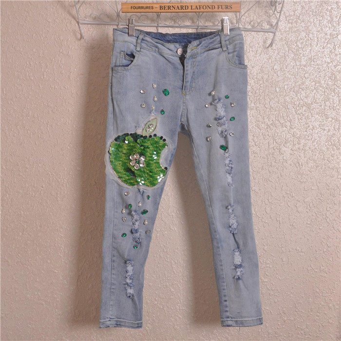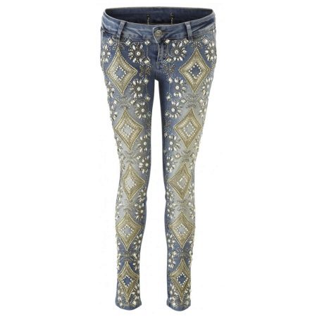 Jeans, embroidered with beads and rhinestones