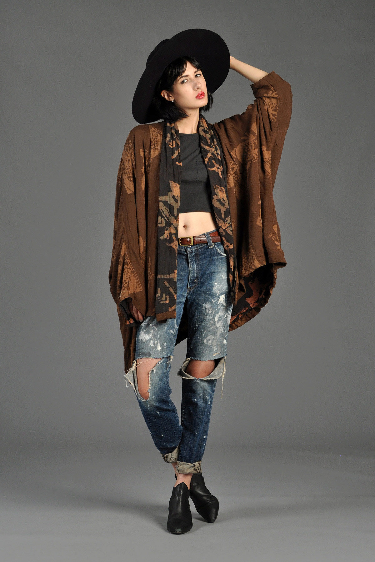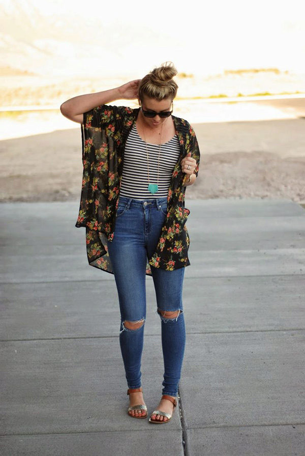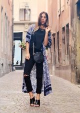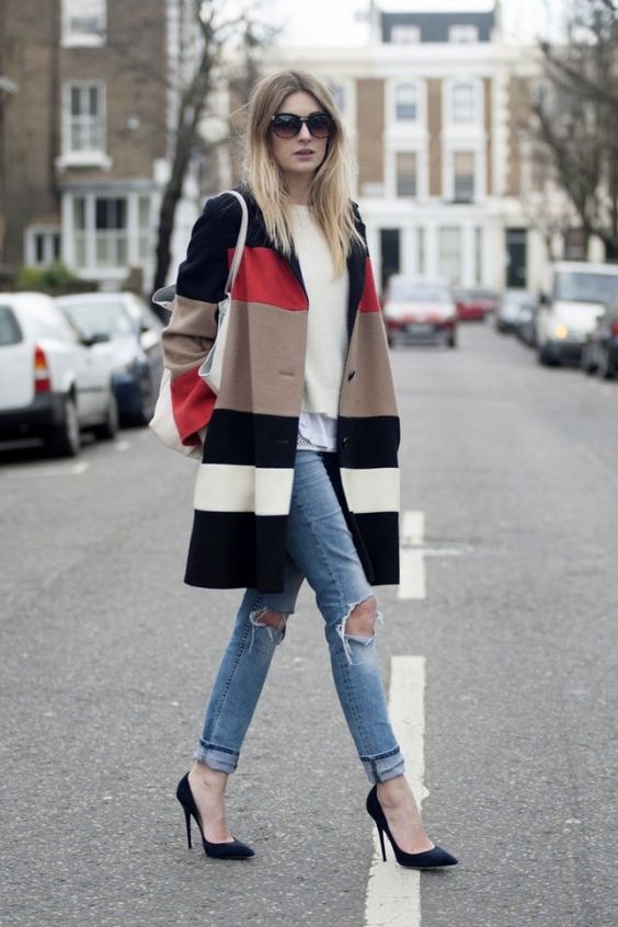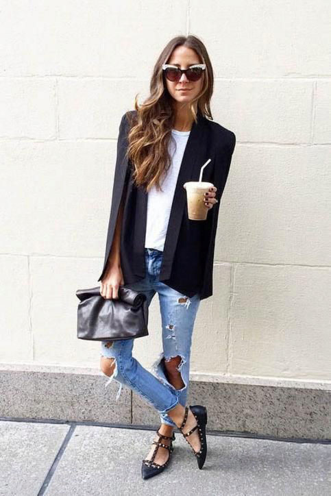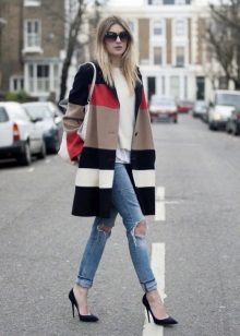 • Cloak. This type of free-form outerwear and knee-length is a great companion for ripped jeans. Again, the perfect finishing touch is the pumps. Both closed and open toe are allowed.