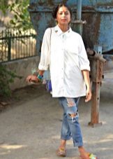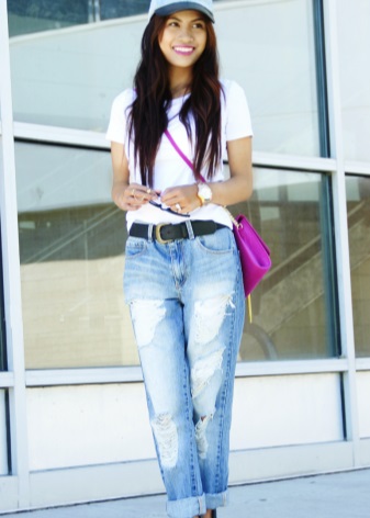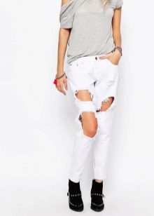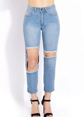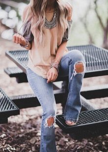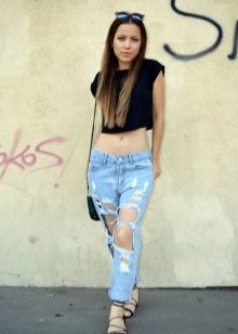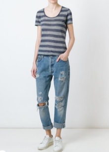 At the end of our lessons of style and rules for the selection and combination of fashionable jeans with holes, we offer you a gallery of particularly spectacular and original images!