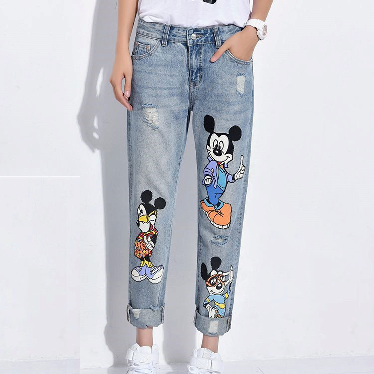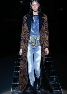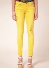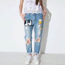 For the most courageous - jeans with a print. The pattern repeating on all trousers can perfectly coexist with holes and cuts.