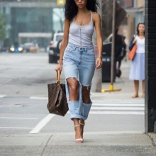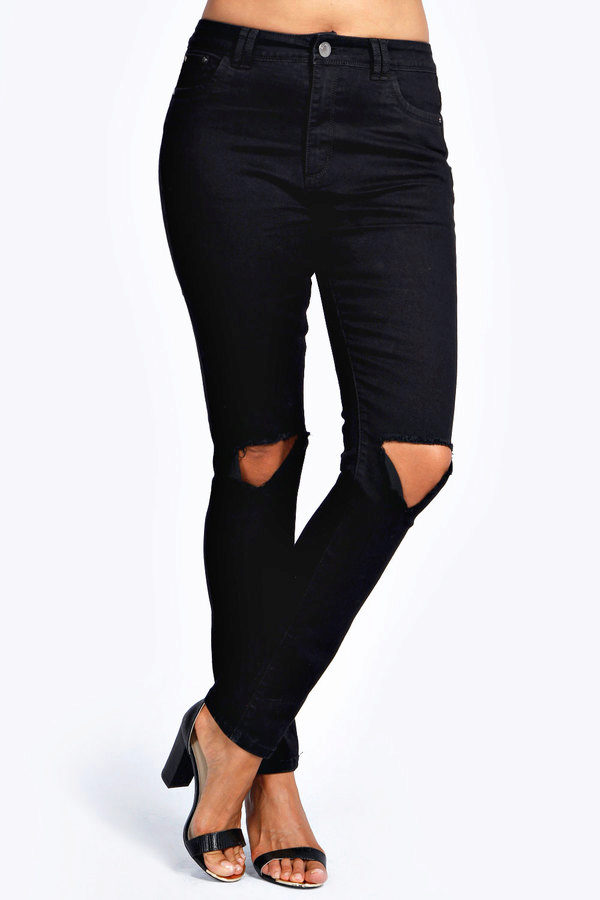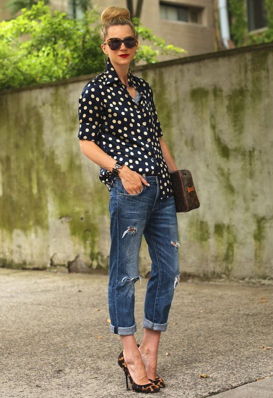 • The owners of the perfect figure fit jeans of any style with any number of holes and scuffs. The most piquant and tempting here will look cuts on the knees and in the lower thighs.