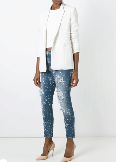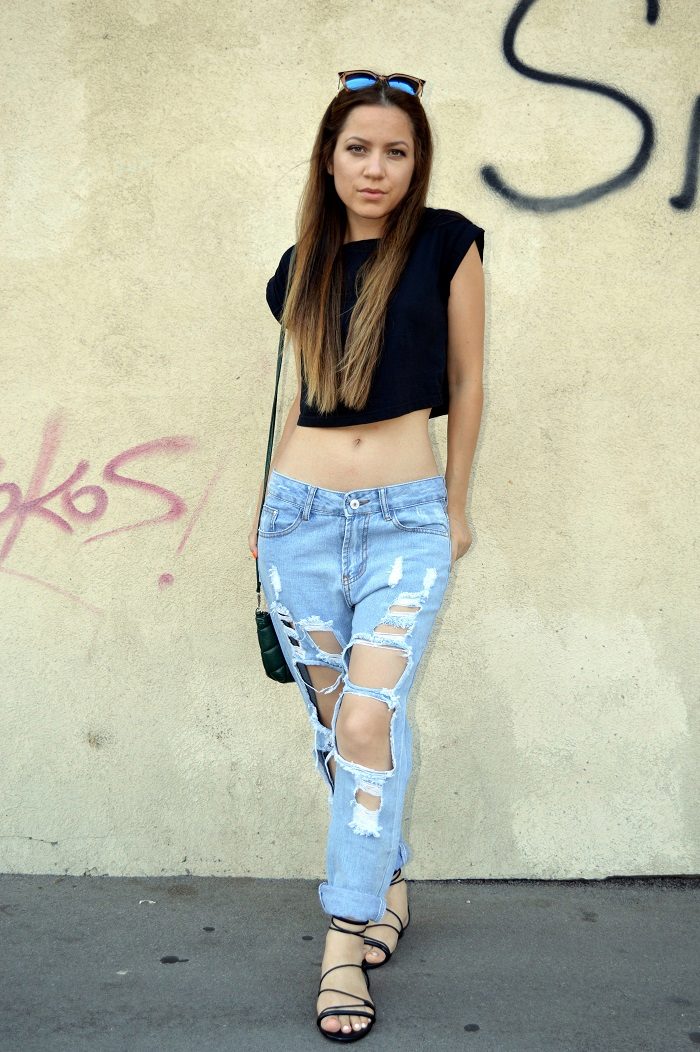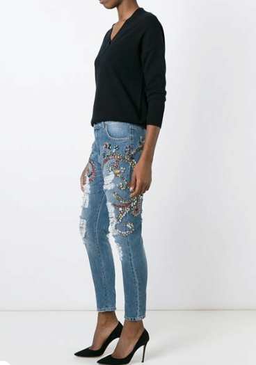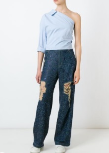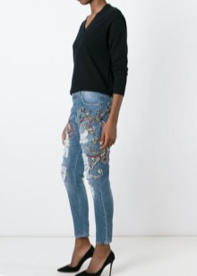 Moreover, in order to somehow justify the crazy prices for their torn jeans, some stylists tend to decorate them with rhinestones and other decorative elements that are probably out of place in such a thing.