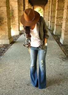 Light or medium bell - option for girls with wide hips. This style helps to balance the silhouette of the figure. But for claws, one might say, it is worthwhile to introduce a limit on the number of scuffs. They should be much smaller than the models described above. Also for flared jeans, the cut in the knee area is not allowed as big as for skinny or straight trousers.