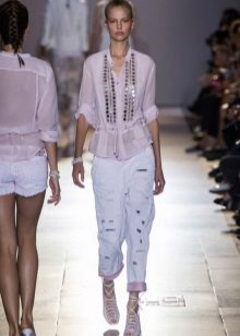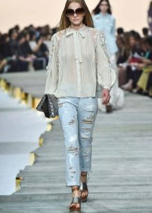 If earlier, behind a torn jeans train, there was a clear symbolism (rebellion, protest), but today it is just a fashionable element and nothing more. That is why all the creators of world fashion seek to find a place for them in their collections. And it does not matter - summer or winter.