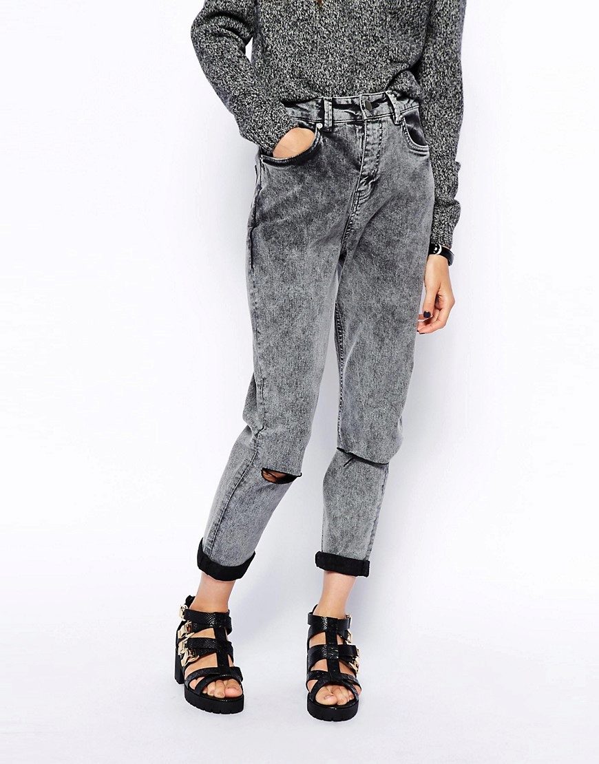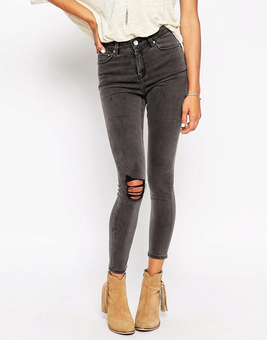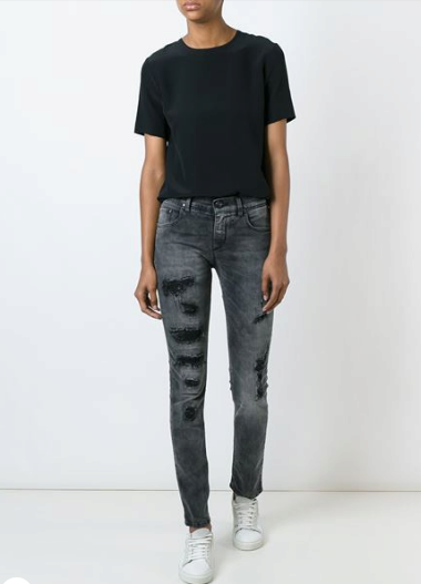 Dark gray jeans are very popular this season.