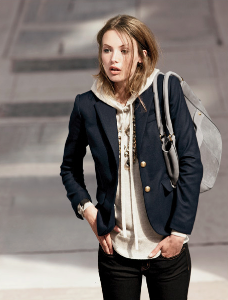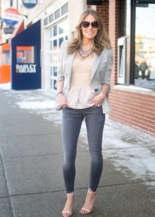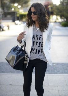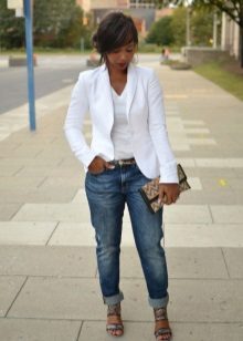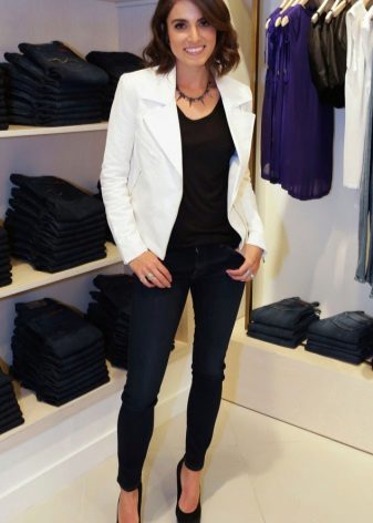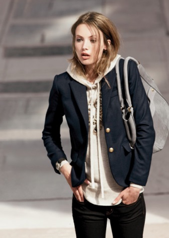 When choosing a jacket under jeans, be sure to consider the compatibility of colors. A jeans of a classic indigo color will suit a blazer of any color, and a black jacket - any jeans. If the jacket is of a pastel shade, light, bleached or “washed” jeans will suit it.