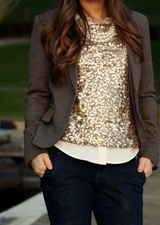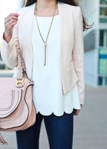 Almost universal thing in your wardrobe, because it can complement both everyday and festive look. It is combined with both light and dark jeans, while the bottom thing is better to choose a light, unobtrusive shade.